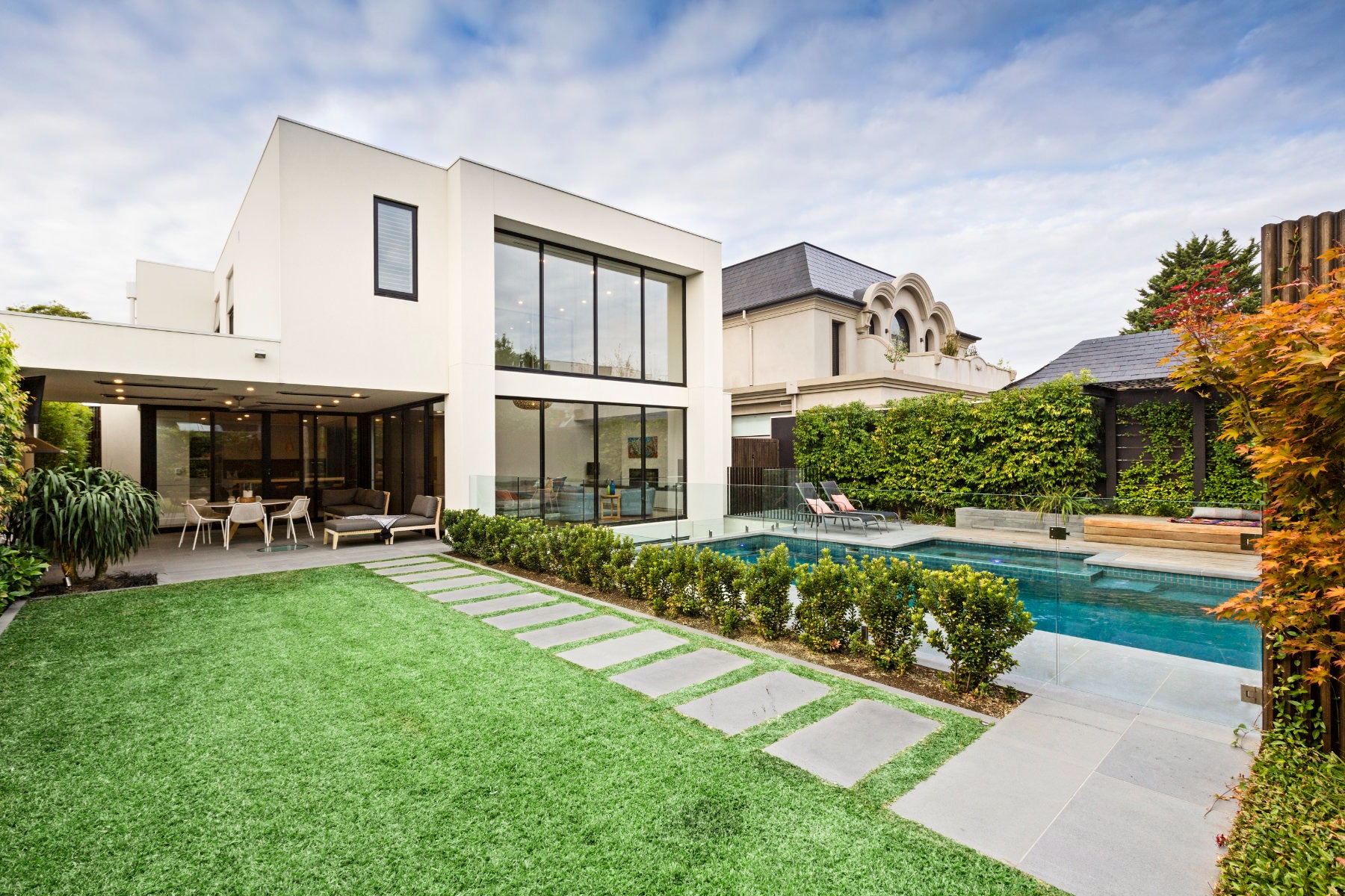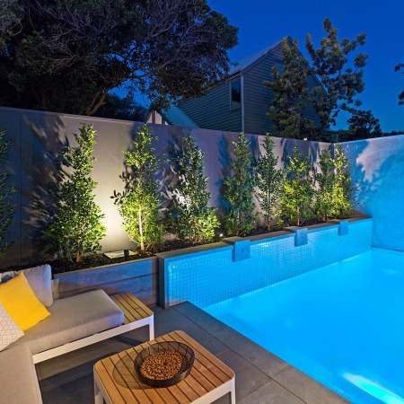 This pool’s minimalist design perfectly complements this homes architecture. Straight lines prevail through pool, spa, planting & cabana to provide no visual disruption between inside & out. The rectangular Perspex window continues this aesthetic whilst providing a stunning water feature to the basement level.