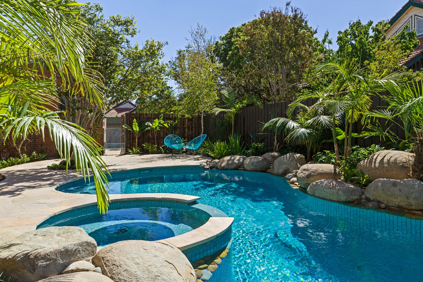 Adventurous clients wanted to put ‘’cool into their pool’’. They requested a free form shape that looked more like natural body of water. Our design complete with circular spa & tropical planting presents like an inviting swimming hole rather than a manmade structure. Natural sandstone & turquoise water ramped up the organic feel of this […]